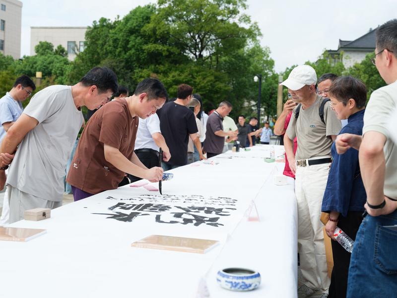 当天,系列活动同步开展。在新塘街道书画社,以“墨写和美乡村,挥毫振兴图景”为主题的笔会交流活动热闹举行,书法爱好者们现场挥毫泼墨,以艺术笔触展现杭州农业农村发展新成果、乡村全面振兴新图景,助力乡风文明建设。