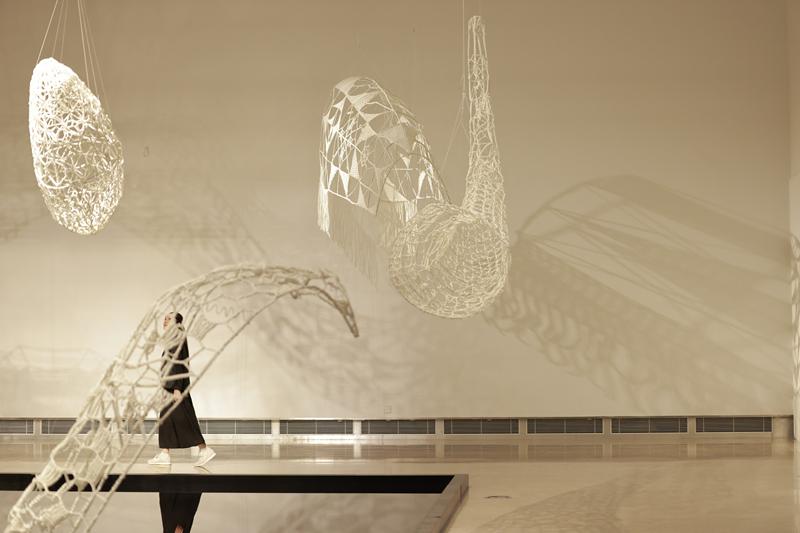 通过精心的策展构思,将展厅中的作品编织成彼此关联、动态呼应的“艺术星丛”,如同星辰互联的宇宙网络,生动呈现纤维艺术在当代语境下的丰富可能与蓬勃生命力。参展艺术家阵容强大,汇聚全球视野:来自美国的安妮·威尔逊、俄罗斯的阿齐扎·卡迪里、韩国的金守子、阿根廷的莱昂纳多·奇亚奇奥与丹尼尔·贾诺内,以及中国的丁乙、李青等。